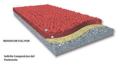 La superficie exterior del Atletismo NOVOFLOOR FULL PUR es un conjunto de materiales a base de resinas de poliuretano, que se utiliza para llevar a cabo, superficies deportivas de varias capas flexibles. Está diseñado para su uso en instalaciones al aire libre como campos deportivos, pistas de atletismo, atletismo, etc se puede instalar sobre Hormigon o Asfalto.